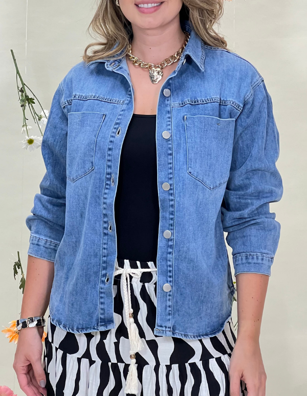 Camisa Europea en DENIM, su diseño de corte moderno realza la figura y aporta un toque sofisticado a cualquier outfit. Viene en talla S,M,L y XL.